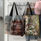 エコ猫柄 ネコレジ袋 トートバッグ 帆布 大容量 かわいい柄個性的 キャンバス ユニセックス 男女兼用バッグ 夏バッグ