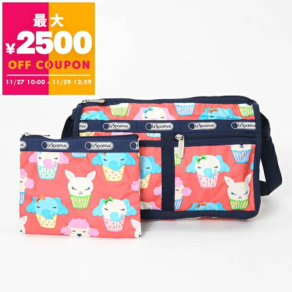 レスポートサック LeSportsac ショルダーバッグ レディース DELUXE SHOULDER SATCHEL アニマルケーキ柄 レッド系マルチカラー 7519 P720 | コンビニ受取 ブランド【最大2500円クーポン 11/29 12:59迄】