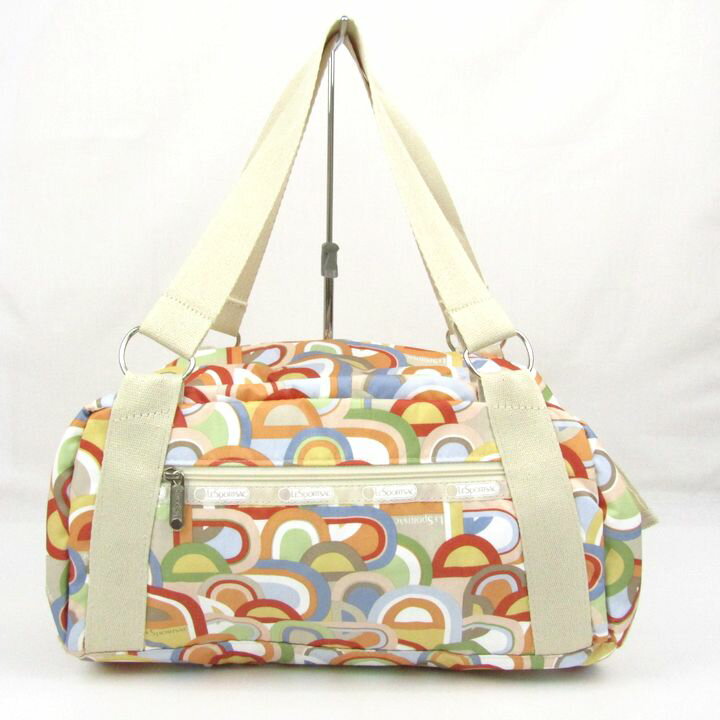 【中古】LESPORTSAC(レスポートサック) ボストンバッグ 本体ロックあり ベージュ×白×マルチ