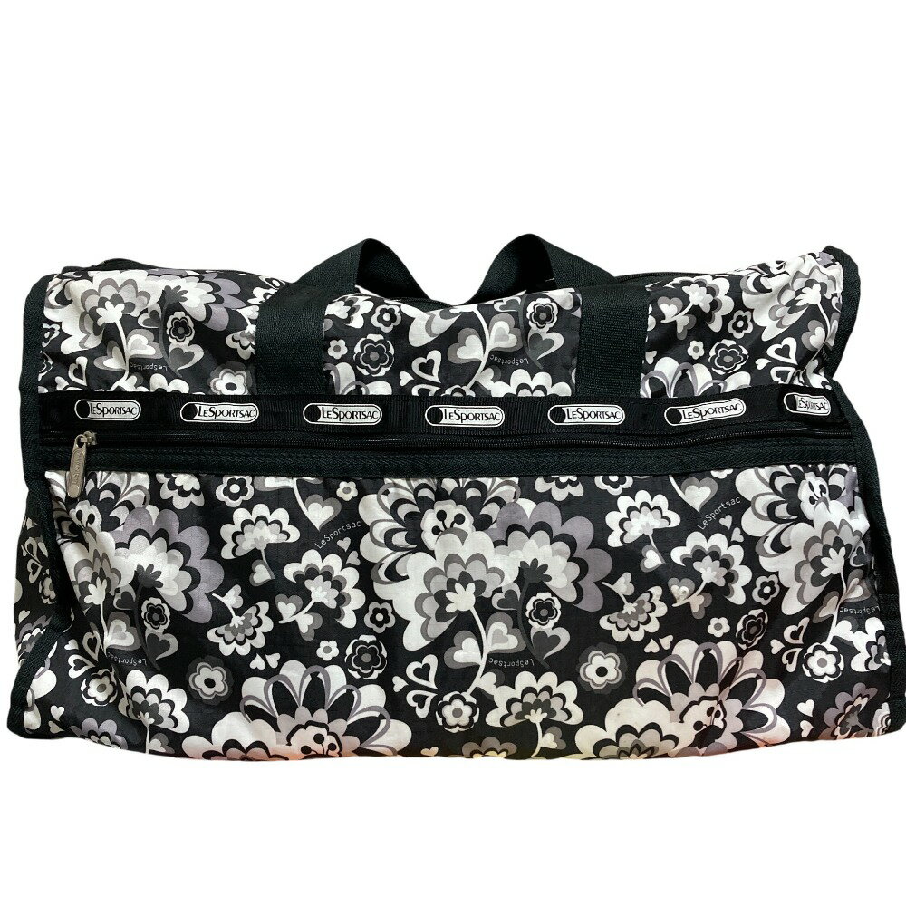 【中古】良品 LESPORTSAC レスポートサック デラックス ラージ ウィークエンダー フラワープリント 2WAY ボストンバッグ ブラック レディース Luxs ブランド古着のリュクス