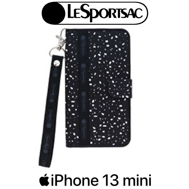 【ブラックフライデー10%OFF】iPhone 13 mini用 LeSportsac ロング&ハンドストラップ付きブックタイプケース Barre Noir R21C051K アイホン アイフォン アイフォーン Apple アップル