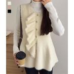 セール トップス ベスト レディース ニット ジレ ペプラム シャギー フリル ふわふわ 40代 50代 N1226送料無料