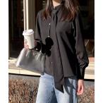 ブラウス シャツ 「 トールレタス 」 ボウタイリボンSETパールボタンブラウス レディース