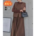 ワンピース 裏起毛 スカート あったか レディース ロング ツイード ベスト プリーツ 2点セット 40代 50代 E3558送料無料