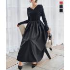 日替わりセール 爆買 ワンピース レディース 長袖 フレア 40代 50代 春 ロング丈 リブニット ハートネック Aライン 低身長 E3577送料無料