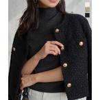 日替わりセール 爆買 ジャケット レディース アウター 40代 50代 ノーカラー ブークレ ショート丈 長袖 30代 金ボタン K1440送料無料