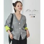 カーディガン ニット トップス レディース バイカラー 長袖 田中亜希子さんコラボ 低身長 軽アウター前後2Way N1186