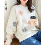 ニット セーター レディース ニットトップス 花柄 トップス 長袖 40代 50代 花柄刺繍 冬服 フラワー N1208