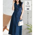 ワンピース ジャンスカ 低身長 Aライン Petitle プチレ Vネック デニム 30代 40代 ジャンパースカート フレア E3575