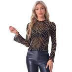 Allegra K レディース メッシュ シアートップ レタストリム ストレッチ 長袖 シャイニーカープ ダンス パーティーシャツ ゴールド XL