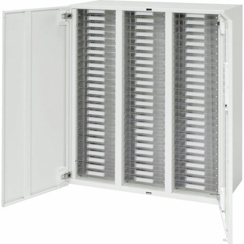 扉付きレターケース V945-11HPSA 両開きトレー型 A4用紙用 3列浅型24段 キャビネット オフィス家具 事務所家具 壁面収納 システム収納 シリンダー錠 フリーラッチ機構 下置き専用 収納棚 保管棚 整理棚 鍵付き カギ付き 完成品 送料無料