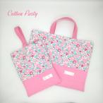 リバティ生地のレッスンバッグとシューズバックのセット(2)上履き入れ 手提げ 通園通学 小学生 幼稚園 花柄 ピンク お稽古 塾 習い事
