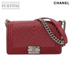シャネル CHANEL ボーイシャネル チェーン ショルダー バッグ レザー レッド A67086 シェブロン Vステッチ シルバー 金具 90285023
