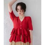 カーディガン ハーフスリーブフリルヘムニットカーディガン レディース