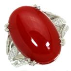 サンゴ/珊瑚 リング/指輪 14.5カラット プラチナ900 PT900 血赤色 こんもりふくらみ オーバルカット /赤(レッド)/セレクションジュエリー・新品/届10