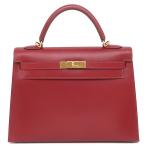エルメス 2WAYバッグ ケリー32 外縫い ボックスカーフ レッド 赤
