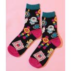 世界のお守りモチーフソックス / 23-25cm 靴下 クルーソックス ハッピーモチーフ 総柄 カラフル 23cm 23.5cm 24cm 24.5cm 25cm レディース