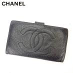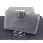 【特別割引★30%OFF】シャネル 長財布 がま口 二つ折り レディース キャビアスキン ブラック×ゴールド 中古