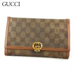 【30%OFFセール】グッチ 長財布 がま口 ファスナー付き 財布 レディース メンズ インターロッキングG GGキャンバス ベージュ ブラウン ゴールド 中古