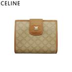 【特別割引★30%OFF】セリーヌ 二つ折り 財布 がま口 ミニ財布 レディース メンズ マカダム ベージュ ブラウン ゴールド 中古