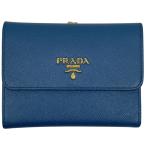 プラダ PRADA ロゴ 二つ折り財布 がま口 札入れ 小銭入れ 二つ折り財布 レザー ブルー レディース 中古