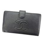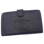 【特別割引★30%OFF】シャネル がま口財布 二つ折り財布 レディース キャビアスキン ブラック 中古