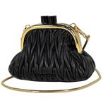 ミュウ ミュウ Miu Miu マテラッセ チェーン ミニ ショルダーバッグ がま口 ポシェット ショルダーバッグ レザー ブラック 5BP016 レディース 中古