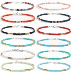 【並行輸入品】Honsny ビーズアンクレットブレスレット 12個 レディース ガールズ 調節可能 カラフル ゴールド アンクレット ブレスレット ハ