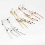 レディース ノンホールピアス イヤリング 低アレルギー ワイヤー バー パール ラインストーン 爆買