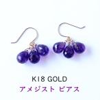 天然石 ピアス K18 18金 アメジスト フックピアス ドロップ イヤリング 紫水晶 パープル 癒し おしゃれ ゴールド 大人 18K レディース パワーストーン ギフト