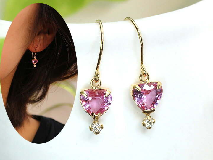 【スーパーセール限定!20%OFFで69300円から55440円に!】ピンクサファイヤ ハートシェイプがシンプルに煌めき揺れる K18YGフック式ピアス・イヤリング可 各種地金対応可 受注品/送料無料
