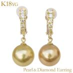 イヤリング 南洋白蝶真珠 ダイヤモンド 0.24ct k18 イエローゴールド 10mm ゴールドパール 大珠 レディース ダイヤ 送料無料 プレゼント ご褒美 自分買い pu