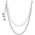 ウォレットチェーン アクセント ベルトレディース パール ズボンチェーン パンツチェーン 財布 シルバー(シルバー, Free)