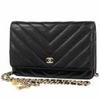 シャネル マトラッセ チェーンウォレット A33814 キャビアスキン レディース ショルダーバッグ ブラック 美品 中古