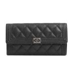 シャネル ボーイシャネルロングフラップウォレット 長財布 A80286 ブラック レディース 中古SA品