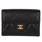 シャネル CHANEL マトラッセ クラシック スモール フラップウォレット 三つ折り財布 レディース キャビアスキン ブラック 黒 ゴールド金具 AP0230