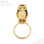 メガネホルダー グラスホルダー 3WAY フクロウ 眼鏡 ブローチ ピンバッチ ピンバッジ レディース ゴールド スカーフリング ふくろう めがねホル