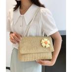 ショルダーバッグ バッグ フラワーコサージュ付きストローショルダーバッグ レディース