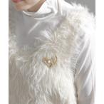 ブローチ パール×ハートメタルブローチ レディース