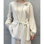 tシャツ コサージュ付きロゴ刺繍入りカットソー レディース