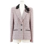【極美品】CHANEL シャネル ジャケット 02P P19180 ツイード テーラード COCOマーク ボタン コサージュ付属 レディース 40 桃色 黒 白 仏製