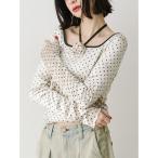 tシャツ ドットベロアトップス コサージュ付き レディース