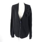美品★GUCCI グッチ 526719 ウール カシミヤ混 コサージュ・ロゴボタン付 Vネック 長袖 カーディガン ブラック L 伊製 正規品 レディース
