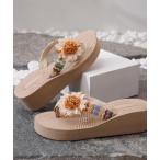 サンダル フラワーコサージュ付きウェッジサンダル レディース