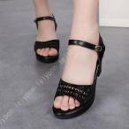 サンダル 厚底 太ヒール ビジューバックル アンクルストラップ サンダル レディース