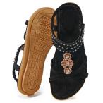Ecetana レディース サンダル フラットサンダル レディース カジュアル サマービーズ ボヘミアンサンダル 快適な伸縮性アンクルストラップ ビー