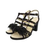 シャネル グルカサンダル ハイヒール チャンキーヒール アンクルストラップ ココマーク レース リボン レザー 36C 黒 G31358 レディース