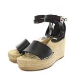 エルメス HERMES ティポリ Tivoli サンダル ウェッジソール アンクルストラップ レザー ジュート 36 黒 ブラック ベージュ レディース