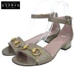 GUCCI グッチ ラメ ホースビット リリアーヌ アンクルストラップ サンダル シューズ レディース シルバー系 36