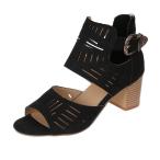 【並行輸入品】ZBYY レディース アンクルストラップサンダル ファッション 夏 オープントゥ ヒールサンダル スリップオン カットアウト サイ